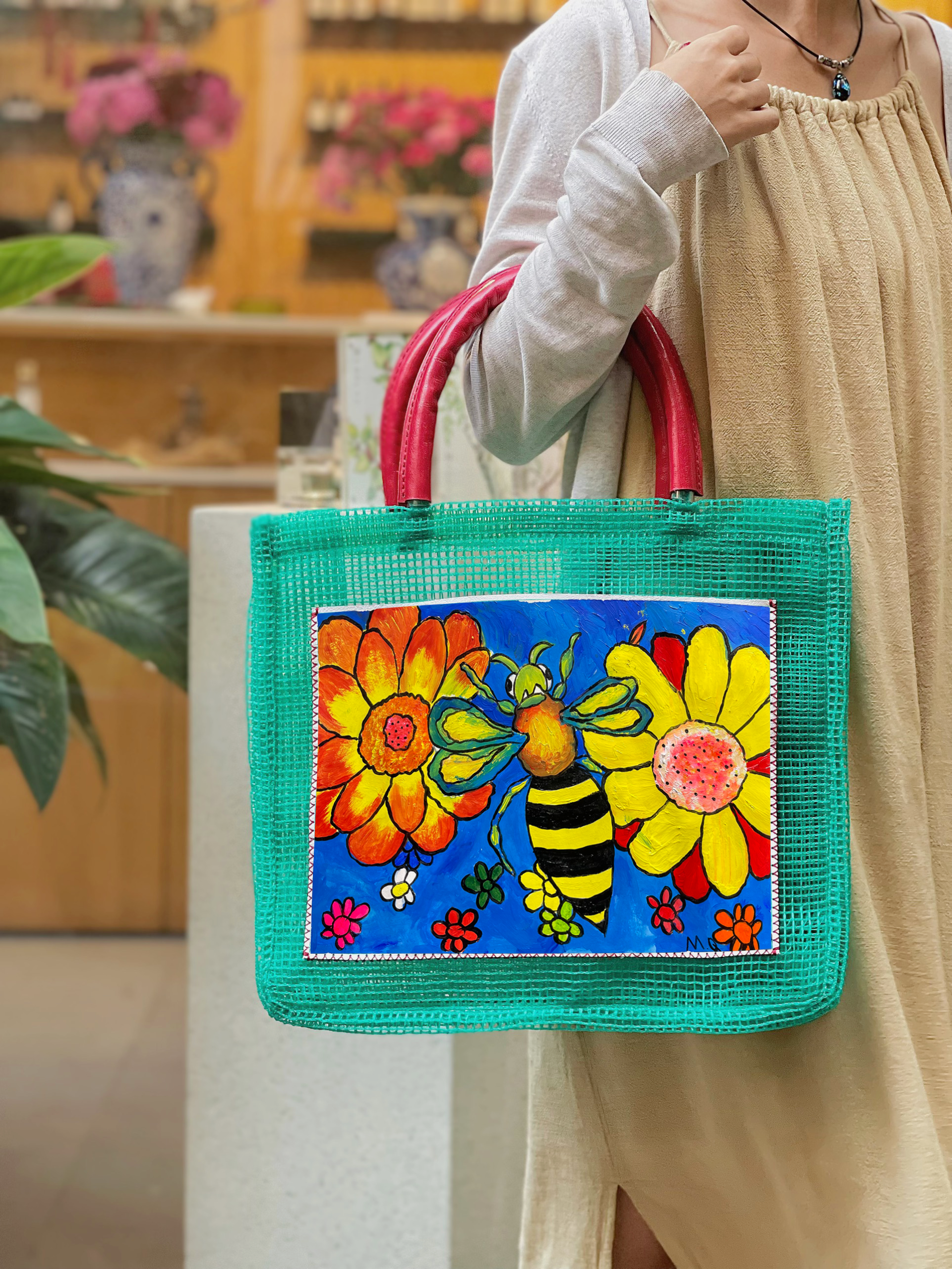 The pictures on the bag are printed from original paintings of MCAS Autistic children.